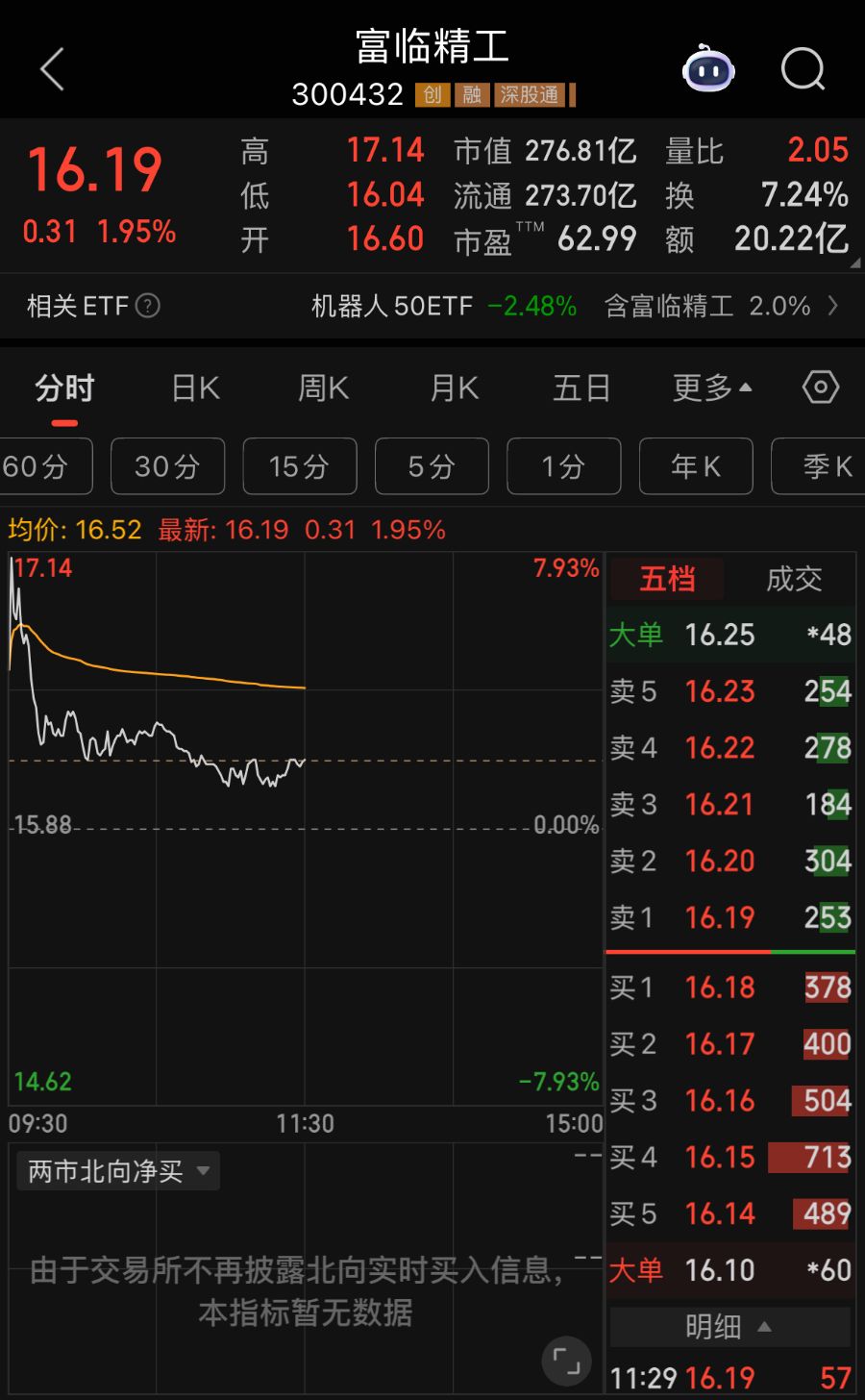 摘要:9月19日早盘,富临精工(300432.SZ)股价一度大涨近8%,报17.14元/股,随后震荡走低。截至午间收盘,富临精工涨1.95%,报16.19元/股。消息