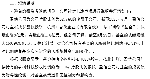 金发科技9月18日公告表示,公司对宇树科技穿透持股0.32%,间接持有宇树科技的股权比例极低。另据公开资料显示,荣晟环保同样通过基金(容腾基金)参股宇树科技,但经计算,其间接持股比例仅为0.022%。