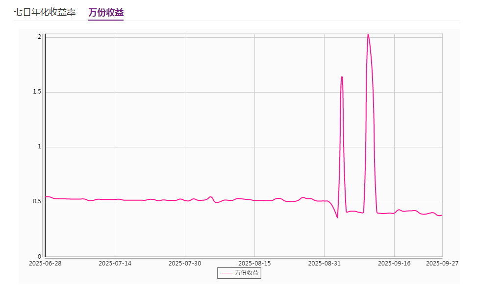 同样发行于二季度的新产品还有光大理财的“阳光碧乐活195号I”,该产品成立于2025年5月23日,9月上旬万份收益曾出现两次大幅度的增长,万份收益一度达到2.0284元,但后续均快速回落。产品当前排名第七,近3月七日年化收益率均值为1.99%。