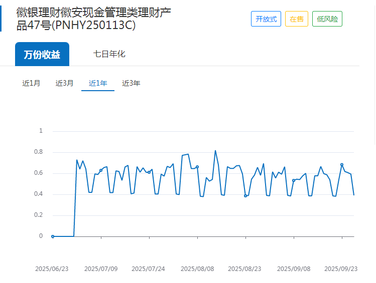 此外,位列榜单第六名的徽银理财“徽安现金管理类理财产品47号-C”是母产品“徽安现金管理类理财产品 47 号”在今年三季度的新增份额,该份额成立以来万份收益波动较大,在0.37至0.82区间跌宕起伏,近3月七日年化收益率均值为2.01%。