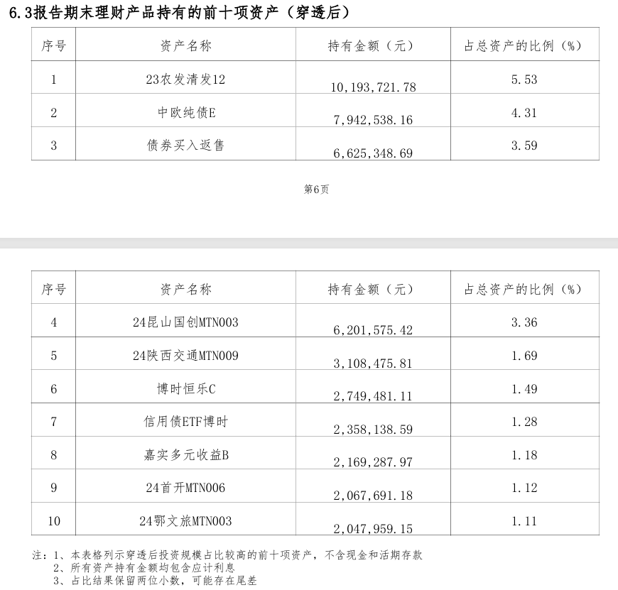 (信银理财“(稳睿+)信颐2040”2025年二季度末前十大持仓资产;数据来源:产品运作报告)