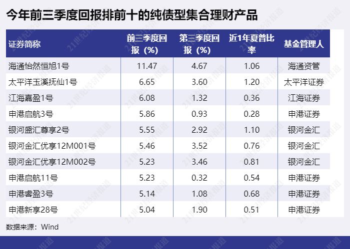 1、纯债型产品表现:3只纯债型集合理财产品前三季度回报超6%